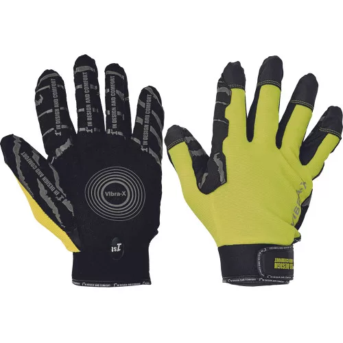 • figyelemfelkeltő színű védőkesztyű • poliészter/spandex kézfej • vízálló és lélegző membrán • mikroszálas szintetikus bőr tenyérrész • 0,8 mm rezgéselnyelő hab, csúszásgátló szilikon mintával az ujjakon • szintetikus bőr körömvédő, poliészter bélés • neoprén mandzsetta tépőzárral • műanyag akasztó méretjelzéssel • EN ISO 10819