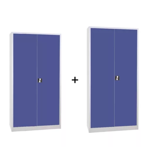 2 db szárnyasajtós fém irattároló szekrény (WING-18 + WING-19), Szürke/kék