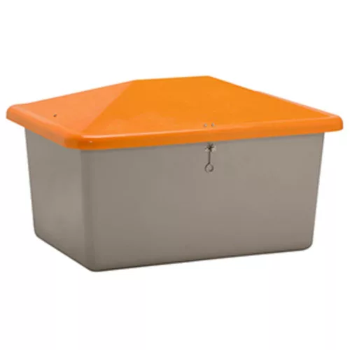 2200 l-es homoktartály, külső méretek sz x m x ma 2130x1520x1240 mm, ürítőnyílás nélkül, test szürke, fedél narancssárga