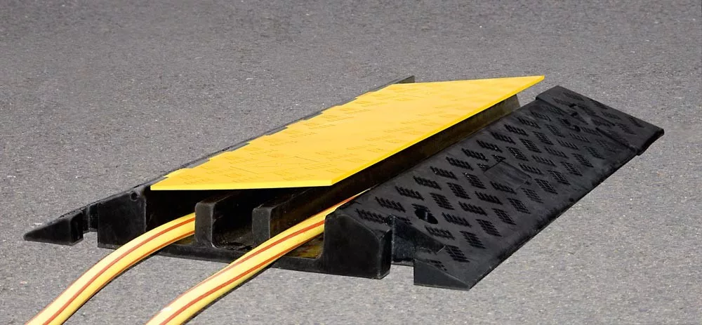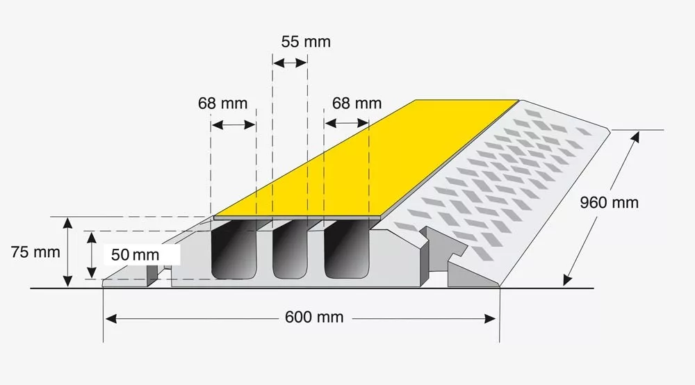 3 csatornás kábelhíd, fekete-sárga színű, kemény gumi keverékből, fedéllel hxszxm 960x600x75 mm