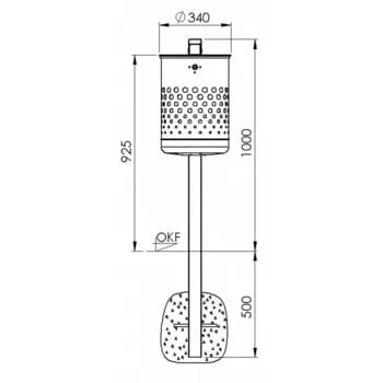 35 l-es szabadon álló hulladékgyűjtő, perforált fedéllel, mé x ma 340x475 mm, q-cső oszloppal betonba ágyazáshoz, betétedény nélkül, tűzihorganyzott