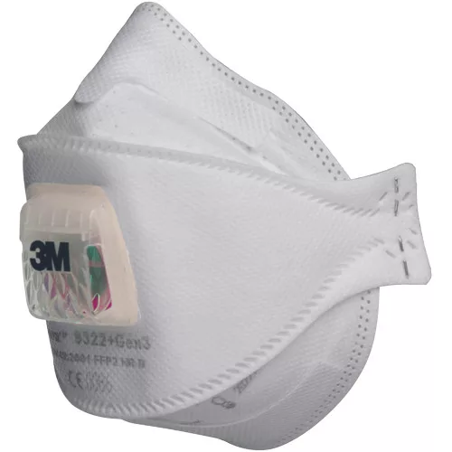 » a 3M™ Aura™ 9322+Gen3 részecskeszűrő félálarc FFP2 szintű légzésvédelmet biztosít veszélyes munkahelyi környezetekben » 3 paneles kialakítású, laposra összehajtható kivitel » 3M™ Cool Flow™ Comfort szeleppel » lágy orrbetét » dombornyomott és formázott felső panel » beépített orrlemezzel » EN 149: 2001 + A1 2009