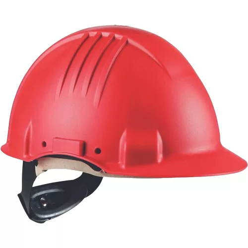 » 3M™ High Heat G3501 védősisak » szellőző nélküli kivitel» nagy sűrűségű PE héj, racsnis méretbeállítás, bőr fejpánt » tömege: 385 g » a fejrész 180 fokkal elforgatható, így a szélesebb látómező miatt beszállásos munkához használható » fémmegmunkálás során is jól alkalmazható, hallás-és szemvédőkkel kompatibilis» EN 397:2012 + A1:2012, EN 50365:2002