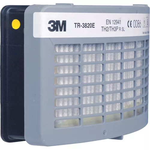 3M TR-3820E is a highly efficient (P3) particulate filter to help protect against particles such as dust and dirt as well as hydrogen fluoride and nuisance levels of acid gases; is intended for use with the 3M™ Versaflo™ TR-300 Air Powered Unit; simple installation; individually packed