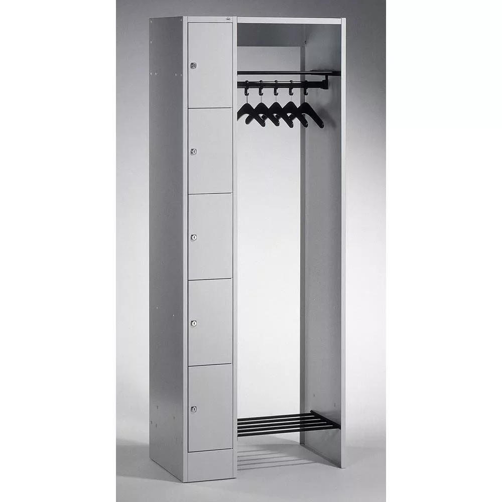 5 fős ruhafogas rendszer, 1x5 rekesz, rekesz szélessége (belső) 190 mm, széxméxma 740x480x1950 mm, ral 7035
