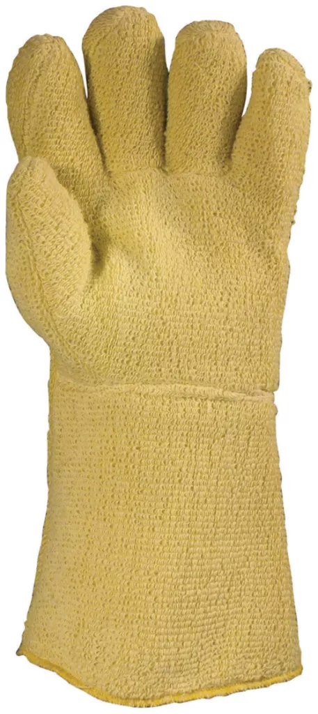 VÁGÁSBIZTOS KEVLAR ÖTUJJAS KESZTYŰ: * 790 g/m2 vastag, emelt szinten hőálló és vágásbiztos, hurkolt Kevlar szál * 500 g/m2 vastag, hőálló és vágásbiztos, aramidszálas belső bélés * plusz 200 g/m2 közbélés * 500°C kontakt hőhatásnál 15 sec időtartamig nyújt védelmet * 31 cm hosszú, ötujjas változat * CSOMAGOLÁS: 50/5