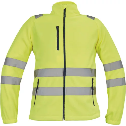 • Hi-Vis férfi polár kardigán 5 cm széles fényvisszavető csíkokkal • cipzáras kialakítás • 1 mellzseb és 2 cipzáras oldalzseb • rugalmas mandzsetták • az alsó szegély húzózsinórral szűkíthető