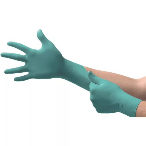 • a Microflex® NeoTouch® ipari felhasználásra való, egyszerhasználatos neoprén kesztyű • latexmentes anyag-összetételének köszönhetően alkalmas az I. típusú allergiák megelőzésére • a púdermentes kialakítás csökkenti a bőrgyulladás kockázatát • ellenáll a savaknak, lúgoknak és alkoholoknak • poliuretán belső bevonat biztosítja az egyszerű felvételt • az érdesített ujjbegyek biztos fogást biztosítanak • a Microflex® NeoTouch® kesztyűket 1,5 AQL-es átlyukadás-vizsgálatnak vetik alá, ami az orvosi kesztyűkre vonatkozó törvényi követelményeknek felel meg • tenyérvastagság: 0,13 mm • ujjvastagság: 0,16 mm • hossz: 240 mm