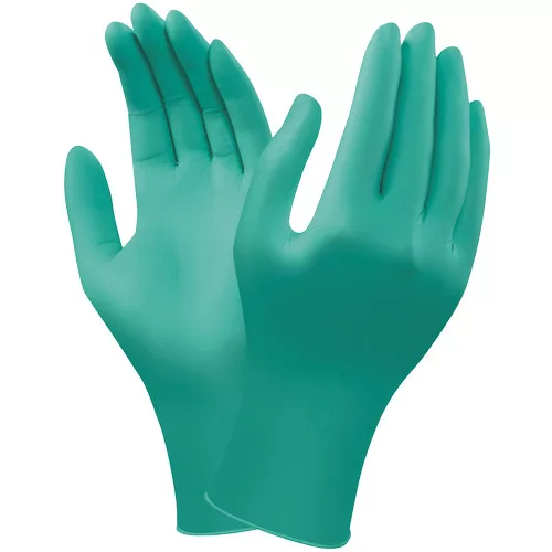 • a Microflex® NeoTouch® kesztyűk az első ipari felhasználásra való, egyszerhasználatos neoprén kesztyű • latexmentes • púdermentes • ellenállnak a savaknak, lúgoknak és alkoholoknak • poliuretán belső bevonat biztosítja az egyszerű felvételt • az érdesített ujjbegyek száraz és nedves körülmények közöttis biztos fogást biztosítanak • meghosszabbított mandzsettával • a Microflex® NeoTouch® kesztyűket 1,5 AQL-es átlyukadás-vizsgálatnak vetik alá, ami az orvosi kesztyűkre vonatkozó törvényi követelményeknek felel meg • tenyérvastagsűg: 0,13 mm • ujjvastagság: 0,16 mm • hossz: 285 mm