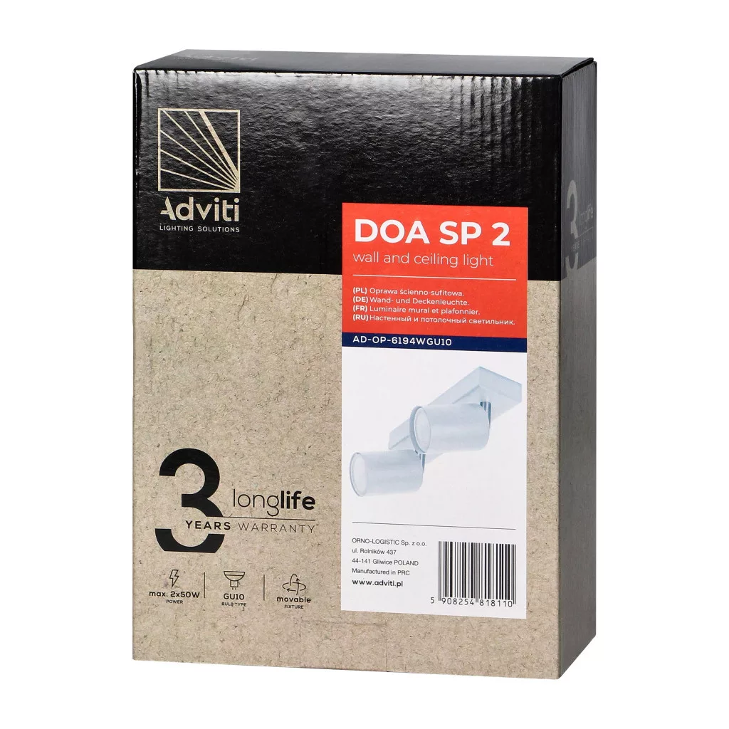 Adviti Spot lámpa falra és mennyezetre szerelhető, fehér színű 2x GU10 MAX 50W