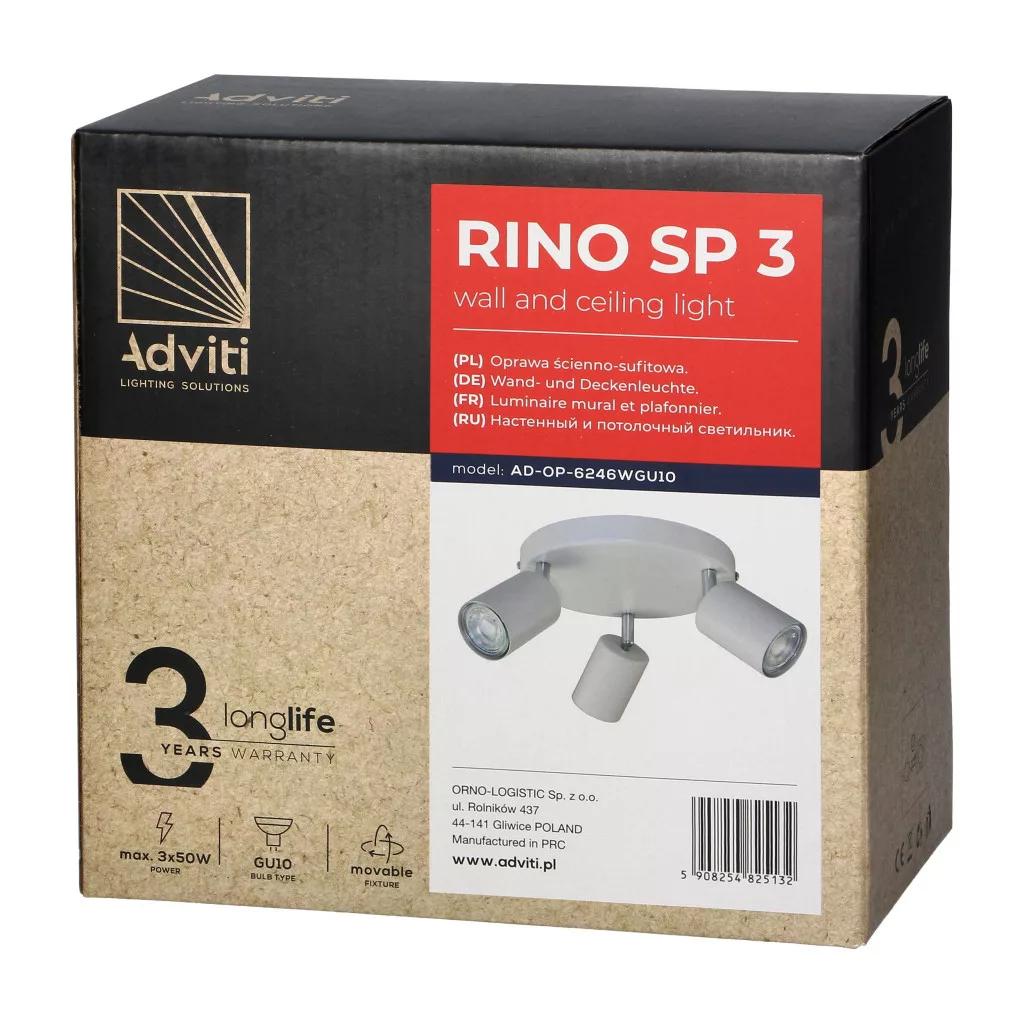 Adviti spot lámpa mennyezeti kerek fehér 3x GU10
