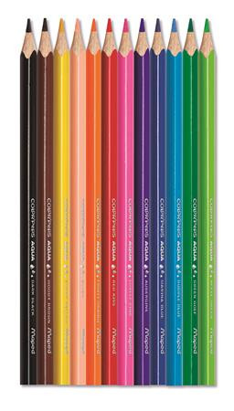 Akvarell ceruza készlet, háromszögletű, ecsettel, MAPED "Color`Peps", 12 különböző szín
