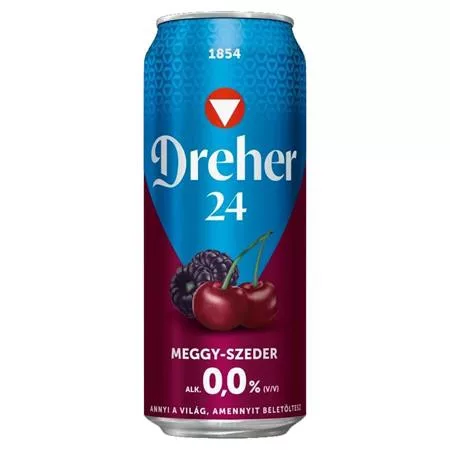 Magyarország egyik legnépszerűbb alkoholmentes márkája, a Dreher 24 meggy-szeder ízű sör frissítő ízét a két fanyar gyümölcs ízének párosítása adja meg.