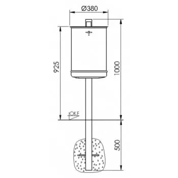 Álló hulladékgyűjtő, 35 l, perforálatlan, fedéllel, mé x ma 340x475 mm, q-cső oszlop, beépíthető, betétedény nélkül, tűzihorganyzott
