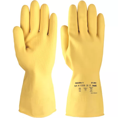 • természetes latexgumiból készült, szilikonmentes ipari védőkesztyű, 100% bolyhos pamutbéléssel • extra védelmet nyújtó hosszú mandzsetta és nagyobb tömeg • a felvételt megkönnyítő és kopásálló redőzött mandzsetta • kimagasló ellenállás a vízalapú vegyszerekkel szemben • kiváló nedves és száraz fogást biztosító kiemelkedő mintázat a tenyérrészen és az ujjakon • jó dörzsöléssel szembeni ellenállás • hossaz: 320 mm