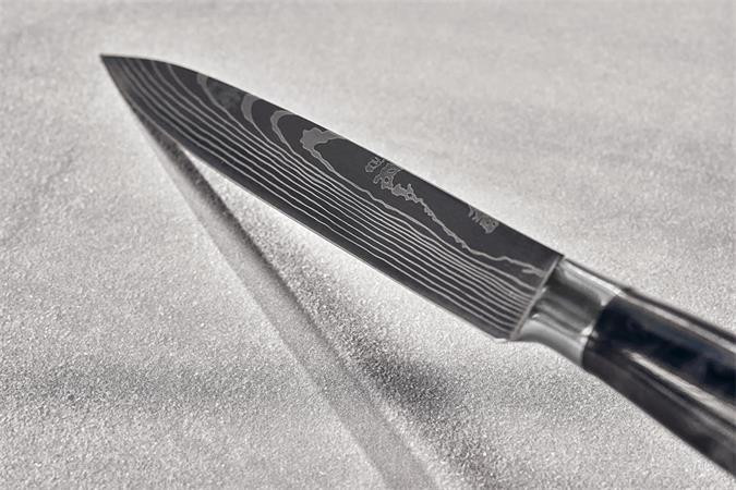 -lézergravírozott, damaszkuszi acélra stilizált penge
