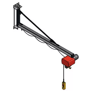 Alumínium fali forgódaru, elektromos láncos emelő nélkül, teherbírás 125 kg, a konzol szerelvény, fordulási tartomány 180 fok, kinyúlás 1895 mm