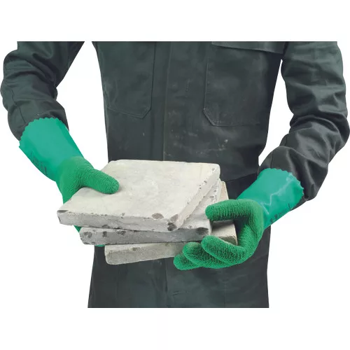 • ergonomikus kialakítású védőkesztyű természetes gumibevonattal hurkolt pamut bélésen • jobb teljesítményt nyújt a könnyű és közepes igénybevételt jelentő üvegkezelésnél • az érdesített kivitel kiváló nedves és száraz fogást biztosít a csúszós felületeken, és védi a kezet az éles szélektől is • jó párnázás, jó vágásellenállás és kényelem • hossz: 310 mm