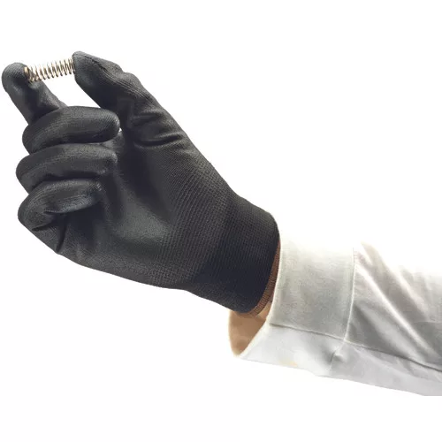 • 4. osztályú dörzsölés elleni védelmet nyújtó varratmentes, kötött nylon kesztyű poliuretán réteggel a tenyéren és az ujjakon • rugalmas kötött mandzsetta • könnyű alkalmazásokhoz