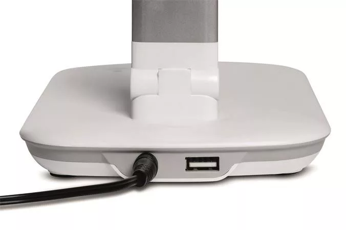 Kompakt, állítható fényerejű LED-lámpa. Galvanizált alumínium karok, stabil acél oszlop nehezékként szolgáló súlybetéttel. Extra takarékos, 80%-kal kevesebb energiaszükséglet az izzókhoz képest, emellett helytakarékos és könnyen kezelhető. 5 fokozatú fényszabályozó a lámpa alján található érintési felülettel. Biztonságos és környezetbarát, újrahasznosítható csomagolás.