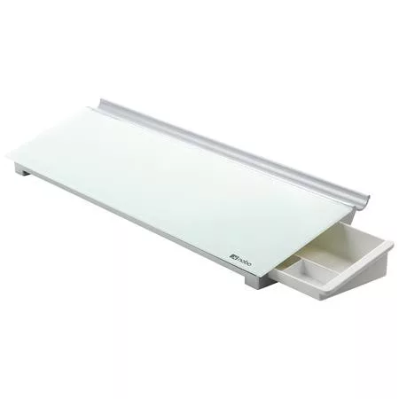 Az egyedülálló Nobo asztali üvegtábla lap stílusos formatervezésének és hasznos, szárazon törölhető felületének köszönhetően kiváló eszköz a jegyzeteléshez. A keret nélküli, szárazon törölhető, mágneses fehértábla felület tökéletesen ellenáll a tintafoltoknak és karcolásoknak. Csak írjon rá, törölje tisztára és kezdheti előröl. Akár jegyzetlapokat is ragaszthat az edzett üveg felületre. Helyezze a billentyűzet mögé és használja rejtett fiókját a kisebb irodaszerek elrejtéséhez. Nobo szárazon törölhető markerrel szállítjuk.