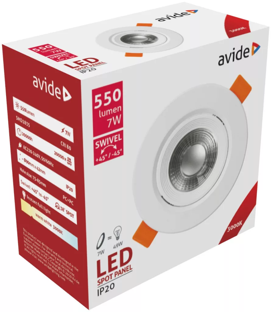 Avide LED panel Beépíthető 38° Kerek 7W WW 3000K