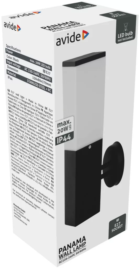 Avide kültéri fali lámpa Panama 1xE27 IP44 Fekete