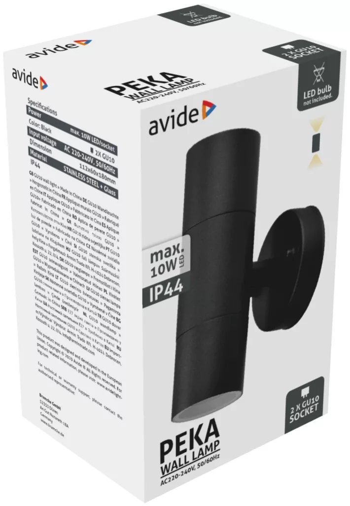 Avide kültéri fali lámpa Peka 2xGU10 IP44 Fekete