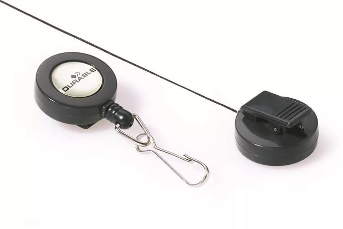 Kihúzható tartó karabinerrel névkitűzők, biztonsági kártyatartók stb. rögzítésére. -műanyag krokodilcsipesszel rögzíthető ruházathoz, táskához -a kártyatartó fém karabinerrel rögzíthető rá -antracit színű -zsinór hossza: 80 cm  Itt megtekinthető és letölthető a termékadatlap. Itt megtekinthető és letölthető a környezetvédelmi adatlap. Gyártó/első EU forgalmazó elérhetősége:  DURABLE Hunke & Jochheim GmbH & Co. KG Westfalenstrasse 77-79, D- 58636 Iserlohn, Germany info@durable.de www.durable.de