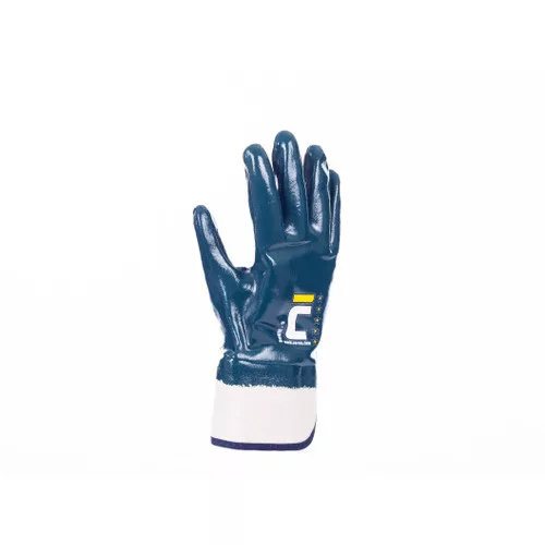 • varrott pamut kesztyű • vastag csúszásgátló nitril mártás • széles mandzsetta , amely védi a ruhaujjat • alkalmas erősen olajos környezetben, koptató hatású anyagokkal végzett munkára