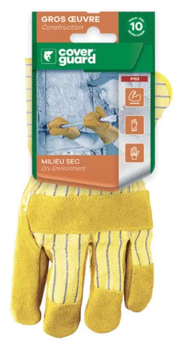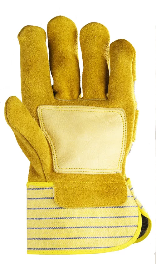 * erős, sárga marhahasíték* színmarhabőr tenyérmegerősítés* tartós vászon kézhát és mandzsetta, pamut tenyérbélés* bőr mutató- és hüvelykujj, artéria-, köröm- és ökölcsontvédő