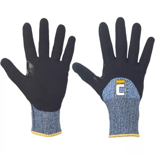 • kötött, varrat nélküli védőkesztyű • 3/4 nitril mártás homokszemcsés felülettel • B szintű vágásvédelem • megerősítés a hüvelyk- és mutatóujj közötti területen • alkalmas éles és zsíros alkatrészek, üveg kezelésére, zsíros fémek vagy fémlemezek megmunkálására vagy gépkarbantartásra • a kesztyű nem tartalmaz üveg- vagy acélszálakat • Öko-Tex tanúsítvánnyal rendelkezik