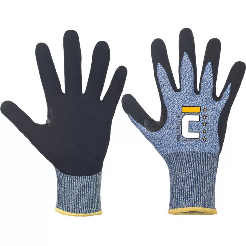 • tenyéren és az ujjakon homokfújt nitrilbe mártott, varrat nélküli, kötött kesztyű B szintű vágásvédelemmel • a hüvelyk- és a mutatóujjak között megerősített • alkalmas éles és olajos termékek kezeléséhez, üvegkezeléshez, olajos fémrészekkel történő munkához, fémlemezekhez vagy gépek karbantartásához • nem tartalmaz üvegszálat vagy acélszálat • megfelel az Öko-Tex szabványnak