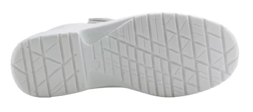 * fémmentes tépőzáras szandál kompozit lábujjvédővel, folyadékoknak jobban ellenálló, kiválóan szellőző fehér mikroszálas felsőrésszel * antisztatikus, olajálló, hajlékony, kétrétegű, fehér PU talp, ütődéselnyelő sarokkal * nedves acél és kerámiafelületekre bevizsgált, SRC fokú csúszás elleni védelem, kényelmes talpbélés * könnyű súlyú, egészségügyi, élelmiszeripari munkákhoz, egésznapos viseletre ajánlott védőlábbeli szivaccsal párnázott bokarésszel, szellőzőnyílásokkal