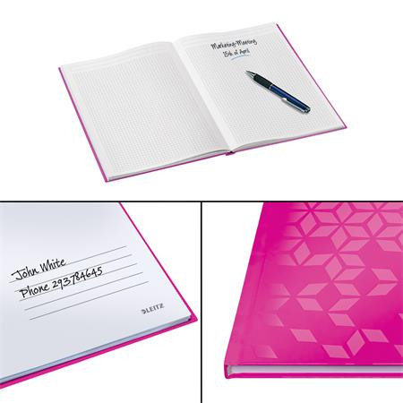 Beíró, A4, kockás, 80 lap, keményfedeles, LEITZ "Wow", rózsaszín