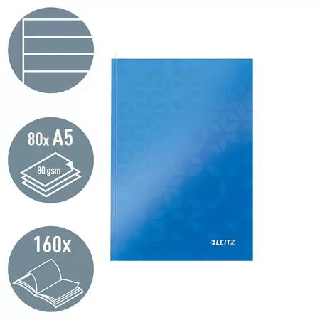 Beíró, A5, vonalas, 80 lap, keményfedeles, LEITZ "Wow", kék