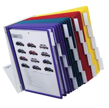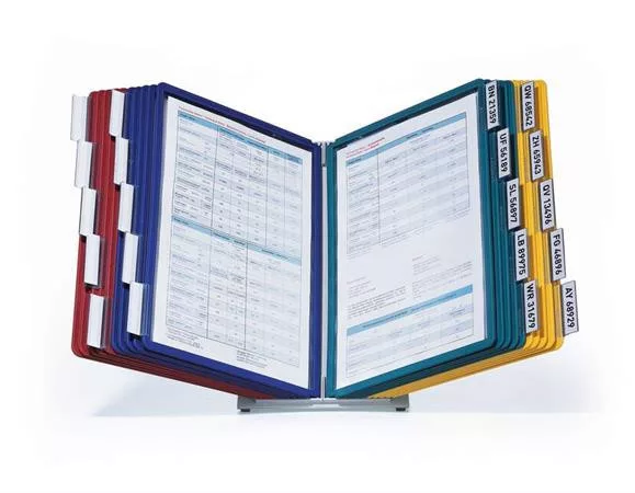 Bemutatótábla-tartó rendszer 20 db A4 méretű SHERPA® panellel. -felhasználási terület: irodai vagy reprezentatív környezetben, pl. szállodákban és vendéglátóiparban -20 db A4 méretű SHERPA® panellel (5-5 db piros, sárga, zöld és sötétkék színben) -polipropilén panelek színes kerettel és tükröződésmentes, fénymásolható fóliával -vegyes színben, mely lehetővé teszi a dokumentumok színregiszteres tárolását -az indexfülek könnyen feliratozhatók -strapabíró és stabil -fém, műanyag -5 év garancia -külső méret: 460x405x370 mm (szé x ma x ho) Itt megtekinthető és letölthető a termékadatlap. Itt megtekinthető és letölthető a környezetvédelmi adatlap. Gyártó/első EU forgalmazó elérhetősége:  DURABLE Hunke & Jochheim GmbH & Co. KG Westfalenstrasse 77-79, D- 58636 Iserlohn, Germany info@durable.de www.durable.de