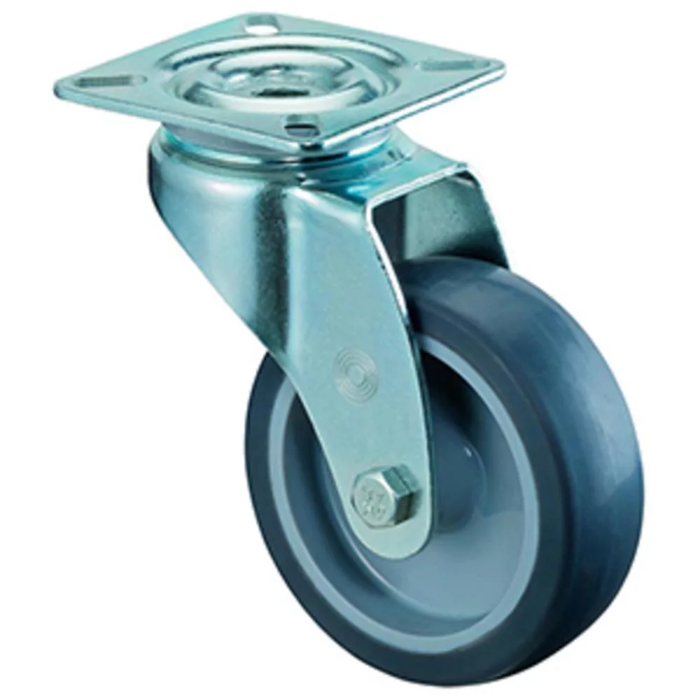 Berendezés beállókerék, szürke gumi, átmérő 100 mm, teherbírás 80 kg, golyóscsapágy, csavaros talp