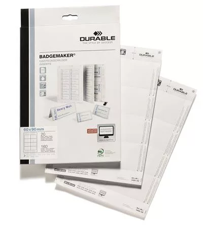 Betétlap, 60x90 mm, DURABLE, fehér