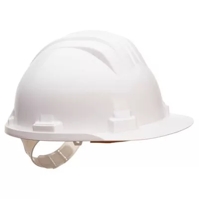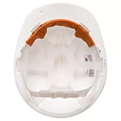 Ipari védősisak kisfeszültségű berendezések biztonságos használatára, 6 pontos műanyag hevederrel, csúszózárral a méret beállításához. Szabályos csúccsal, univerzális oldalsó nyílásokkal és esőcsatornával rendelkezik. Egy izzadságpánt is jár hozzá.