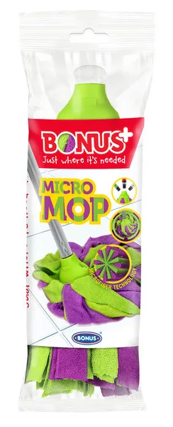 A felmosófejek sztárja a mikroszál erejével! A BONUS+ MicroMOP a leghatékonyabb nedvszívással rendelkező felmosófej sima padlófelületekhez. A padlómosás során az egyik legnagyobb kihívás, hogy a koszt valóban fel tudjuk szedni és megakadályozzuk a piszok ide-oda tologatását. Nem elég csak simogatni a padlót, egy igazán jó felmosófej képes arra, hogy valóban felveszi a szennyeződéseket. A MicroMOP képes erre, méghozzá erőfeszítés nélkül, hiszen óriási nedvszívó képességgel rendelkezik és nedvesen nehéz lesz, emiatt nem kell rányomni a padlóra takarítás közben. Egyetlen húzással csodálatos tisztaságot érhetünk el, a felület pedig szinte száraz marad.