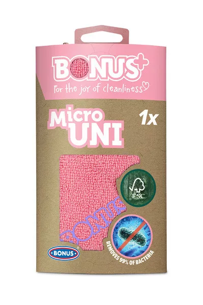 Makulátlan tisztaság a mikroszálak erejével. A BONUS+ MicroUNI kendő a szösz-és csíkmentes tisztaság nagymestere!