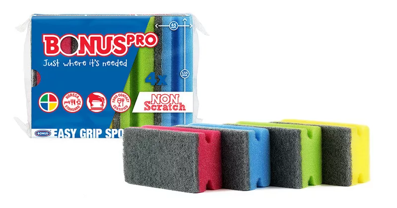 A HACCP rendszer irányelveinek megfeleően a BONUSPRO 4-es kiszerelésű formázott szivacsunk színkódolt, garantálva ezzel azt, hogy a megfelelő színű szivacsot a megfelelő tevékenységre használjuk.