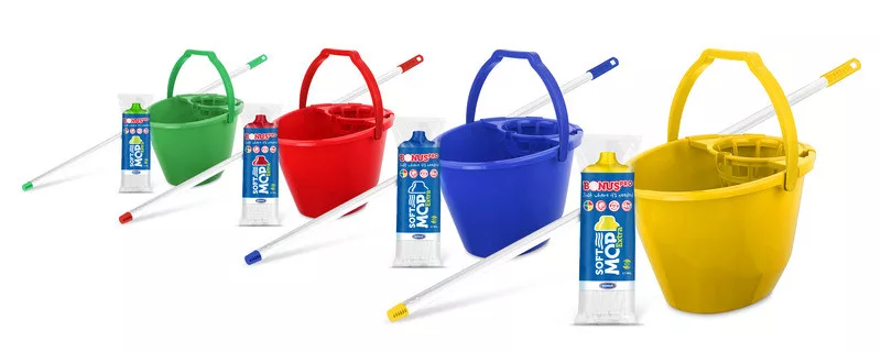A szettet a BONUS 11l-es felmosóvödör teszi teljessé. Nagy falvastagsága a tartósságot, kiegyensúlyozott tömegközpontja pedig a stabilitást garantálja. Annak érdekében, hogy a vizet minél hatékonyabban ki tudjuk csavarni a felmosófejből, a spirálos csavarókosarat megnövelt áteresztő résekkel és csavarodást-gátló bordákkal láttuk el.