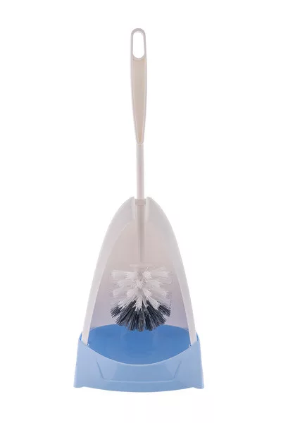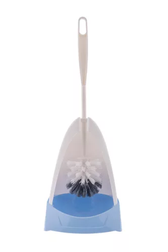 Klasszikus műanyag WC kefe műanyag szálakkal és WC kefe tartóval.