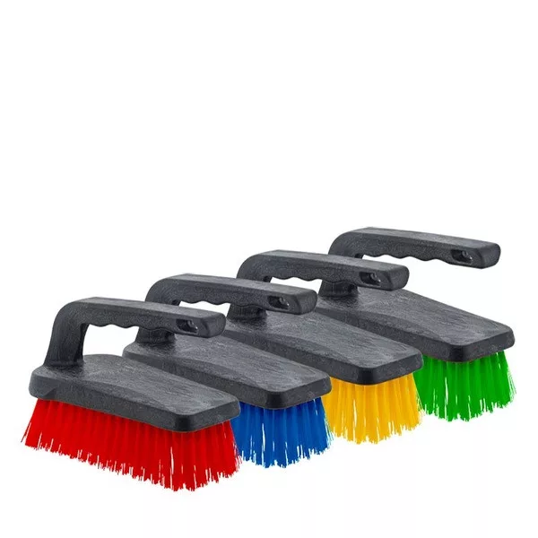 Nyeles súrolókefe tartós, újrahasznosított tömör műanyag testtel, HACCP színkódolt műanyag sörtékkel.