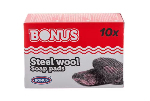 Gondoltunk már arra, milyen jó lenne, ha a takarításhoz elég lenne csak a dörzsit megfogni, és anélkül súrolhatnánk vele, hogy tisztítószereket kellene hozzáadni← A BONUS szappanos dörzsipárna egy különleges termék, melyet pontosan erre találtunk ki. Szappannal átitatott termékről van szó, melynek segítségével a legmakacsabb szennyeződéseket is legyőzhetjük további vegyszerek használata nélkül. Hogyan← A fémpárna már tartalmazza az intenzív zsíroldáshoz és súroláshoz szükséges citrom illatú tisztítószert, így nem csak egyszerű, de rendkívül takarékos megoldás is.