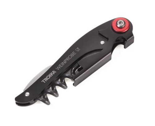 Bornyitó szett, kés, vákuumozó dugó, TROIKA, fekete-piros