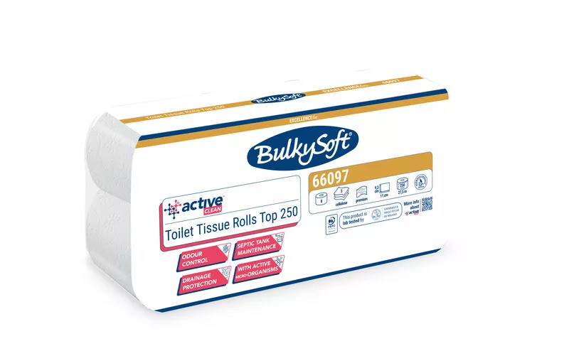 Az Active Clean a Bulkysoft első olyan toalettpapír termékcsaládja, amely teljes mértékben természetes, nem patogén aktív mikroorganizmusokat tartalmaz. A mikroorganizmusok hatékonyságát és biztonságosságát egyetemi laboratóriumi vizsgálatok igazolják. Vízzel érintkezve ezek az aktív mikroorganizmusok működésbe lépnek, enzimeket termelnek, amelyek a káros szerves anyagok lebontásával természetes biológiai tisztulási folyamatot indítanak el. Ennek eredményeként a rendszeres használat mindennapos tisztító és vízkőoldó hatást biztosít.