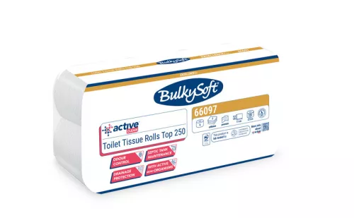 BulkySoft Active Clean szállodai toalettpapír (wc papír), 3 rétegű, 250 lapos, hófehér, 8 tekercs/csomag
